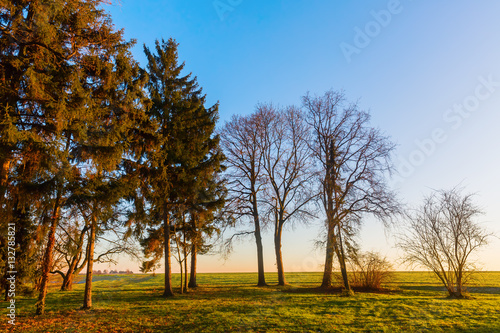 © Christian Müller, Fototapeta premium rural landscape with trees at sunset