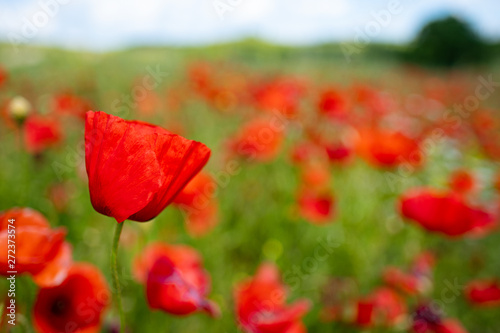 © ZoomTeam, Naklejka premium Rural poppy field. In a meadow