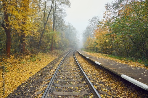 © Chalabala, Fototapeta premium Rural railway station in fog