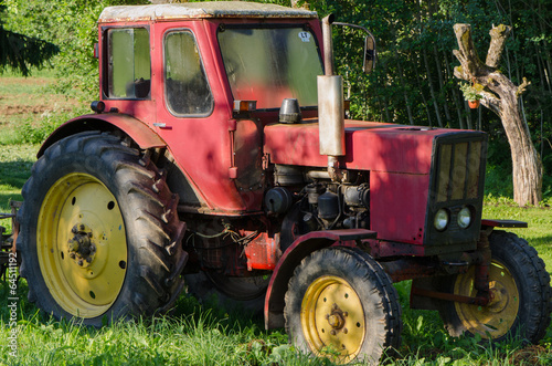 © sauletas, Fototapeta premium rural red old farm tractor outdoor