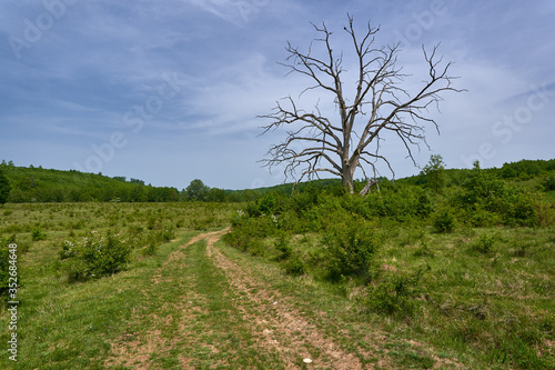 © Xalanx, Obraz premium Rural road and dead oak tree