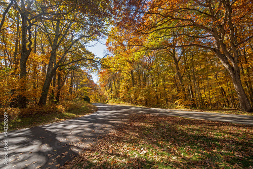 © wildnerdpix, Obraz premium Rural Road in Fall Shadows