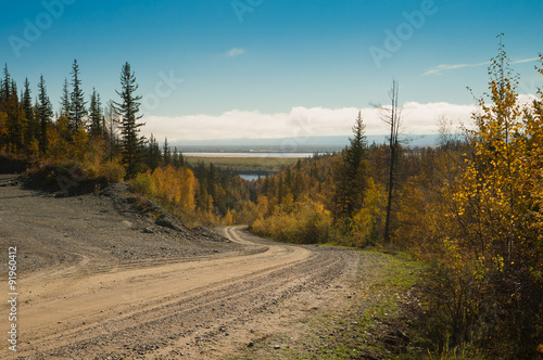 © bongiozzo, Fototapeta premium Rural road in siberian taiga, Sakha, Russia