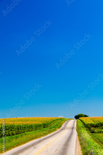 © Don Landwehrle, Obraz premium Rural road running between cornfields.