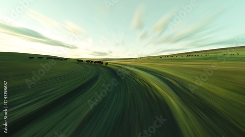 © Faruq, Fototapeta premium Rural road speed, grassland, herd, sunset, travel photography
