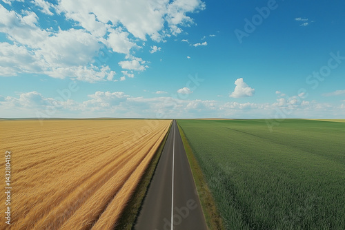 © BestFootageFirst, Fototapeta premium Rural Road Through Contrasting Fields