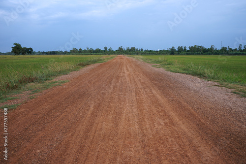© suwichan, Fototapeta premium Rural roads in the countryside are surrounded by fields.