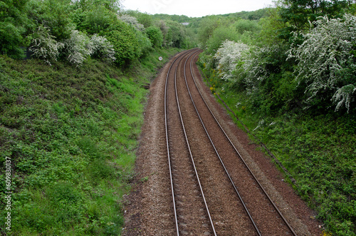 © Bryony, Fototapeta premium Rural train track curving into distance, UK