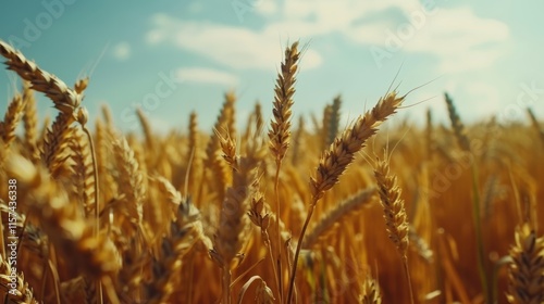 © Наталья Добровольска, Obraz premium Rural Ukrainian wheat field with bright sunlight and golden grains.