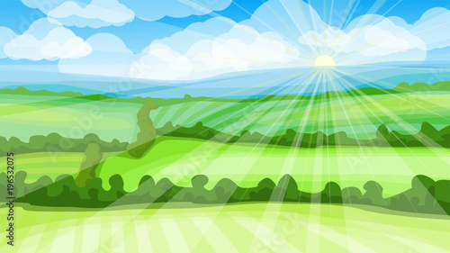 © grafik_art, Obraz premium Rural vector landscape with fields