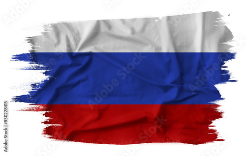 Fototapeta premium Russia flag on brush stroke on transparent background.