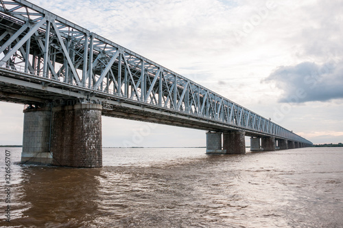 Naklejka premium Russia, Khabarovsk, August 2019: Road bridge on the Amur river in the city of...