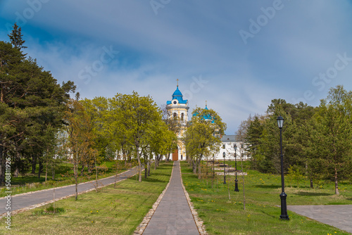 Fototapeta premium Russia. Leningrad region. May 29, 2022. View of the Nativity of the Theotokos...