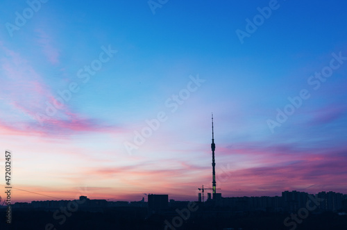 Fototapeta premium RUSSIA, MOSCOW: Scenic sunrise landscape view of the city garden with Ostankino tower