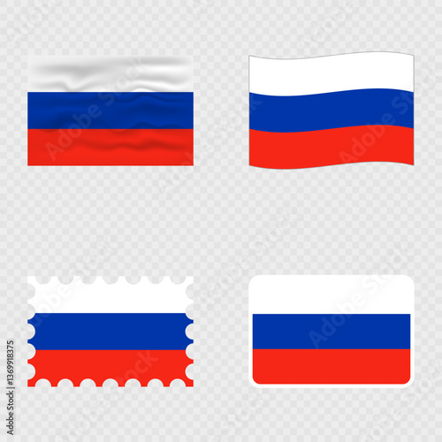 © Ruslan, Naklejka premium Russia national flag in four different styles.