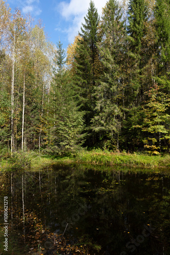 © Iurii, Obraz premium Russia Perm Krai swamp on a cloudy summer day