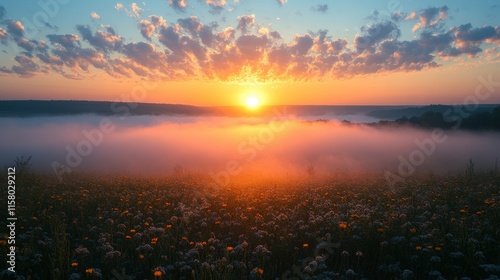 © NhV, Fototapeta premium russia republic of khakassia fog in the early summer morning in the fields near the city of abakan