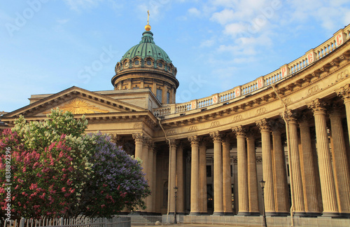 © Olena, Fototapeta premium Russia, Saint-Petersburg. Blooming lilacs against the backdrop of the Kazan Cathedral.