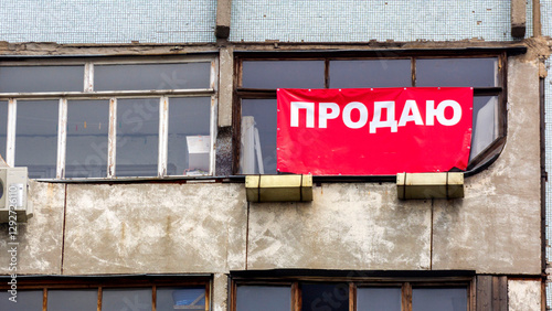 Obraz premium Russia, Samara. June 22, 2014. I am selling a banner on the loggia of a multi-story building. Text in Russian: I am selling