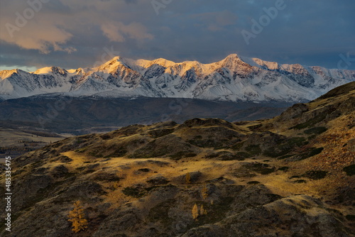 Obraz premium Russia. South Of Western Siberia, Mountain Altai. Autumn dawn in the North-Chuyskiy mountain range in the heart of the Kurai steppe.