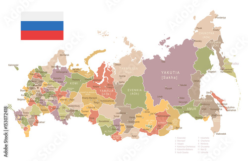 © Porcupen, Fototapeta premium Russia - vintage map and flag - illustration