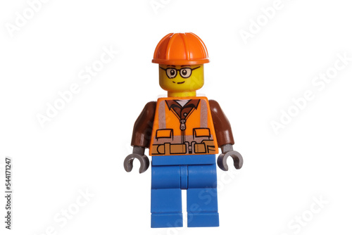 © Fotograf, Obraz premium Russia Vyborg 07.07.2022 lego man isolated on white background