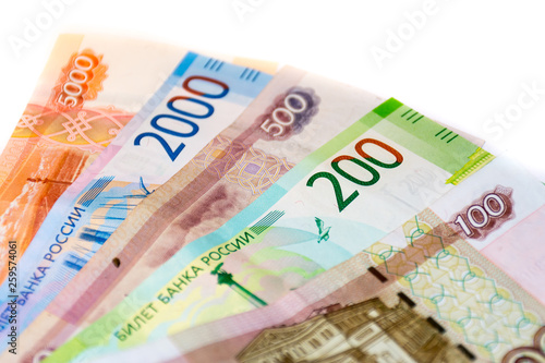 Obraz premium Russian banknotes worth 100, 200, 500, 2000 and 5000 rubles