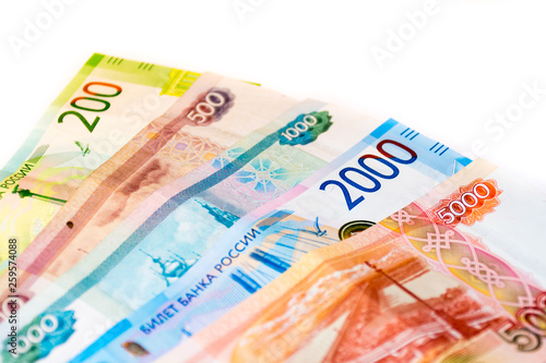 Obraz premium Russian banknotes worth 100, 200, 500, 2000 and 5000 rubles