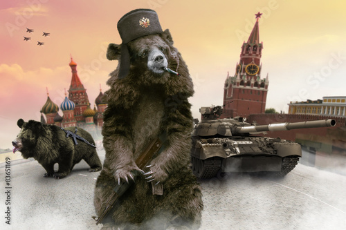 © diter, Obraz premium Russian bears with the Kalashnikov guns on the Red Square.