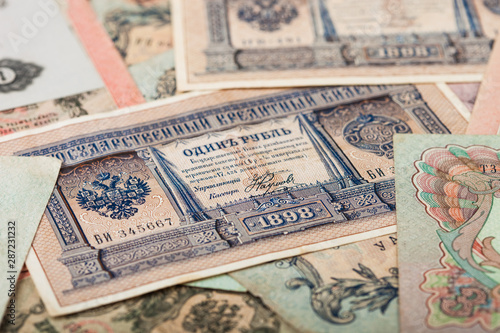 Obraz premium Russian empire old vintage rubles from czar Nicholas 2. Rubles with different signatures.Collectable items. Uncirculated.