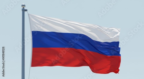 Fototapeta premium Russian Federation Flag Waving Proudly Against a Clear Sky: A Symbol of...