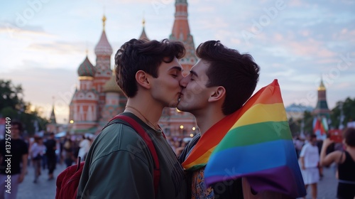 © grooveisintheheart, Fototapeta premium Russian gay couple on the Red Square in Moscow, Russia