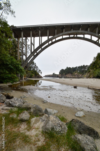 Fototapeta premium Russian gulch california highway one bridge over beach.