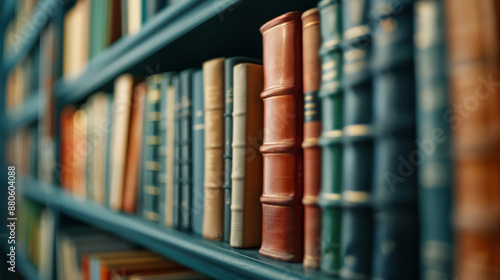 © fotogurme, Naklejka premium Russian literature books intertwined with international titles on a bookshelf