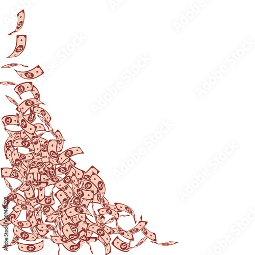 © Begin Again, Obraz premium Russian ruble notes falling. Small RUB bills on wh
