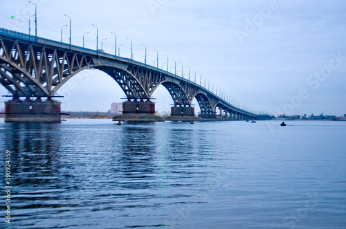 Naklejka premium Russian Saratov October 30, 2020: bridge over the Volga in autumn