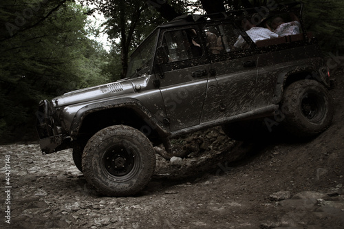 © BGodunoff, Fototapeta premium Russian SUV in the forest