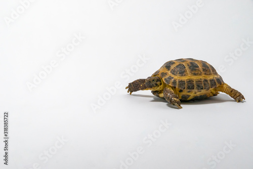 Obraz premium Russian Tortoise on seamless white background.