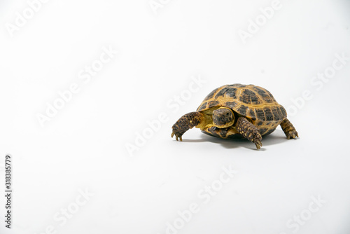Obraz premium Russian Tortoise on seamless white background.