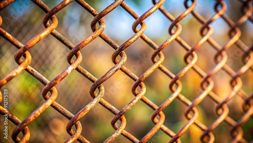 © ฉัน ก็คง, Fototapeta premium Rust and Resilience: A Close-Up on a Weathered Chain Link Fence Generative AI