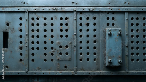 Fototapeta premium Rust-kissed perforated metal evokes steampunk nostalgia, industrial...