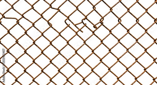 Fototapeta premium Rusted Chain Link Fence Texture - Close-up texture of an old, rusty chain link fence with some broken sections. Suitable for backgrounds or design elements