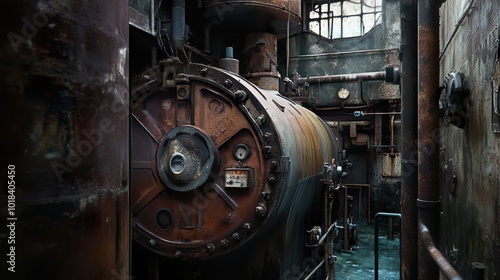 Fototapeta premium Rusted Industrial Machinery in Abandoned Factory