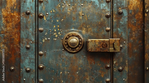 Fototapeta premium Rusted metal door with antique lock and rivets.