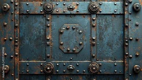 Fototapeta premium Rusted Metal Door With Decorative Bolts And Panels