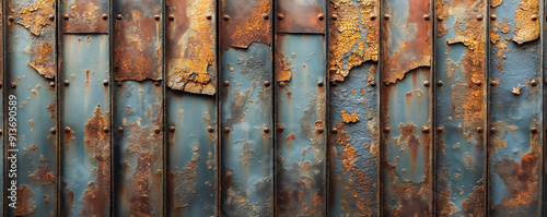 © GreenOptix, Obraz premium Rusted metal wall, topview, background, flat
