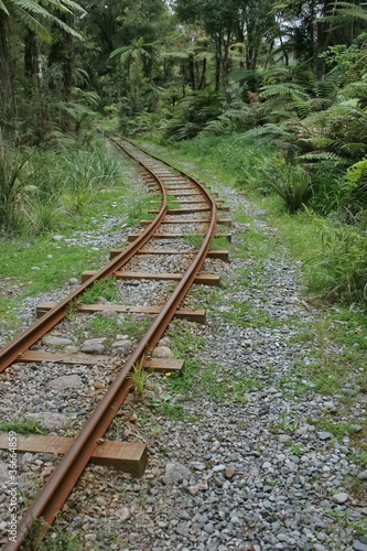 © Vytenis, Fototapeta premium Rusted rails curve in the jungle