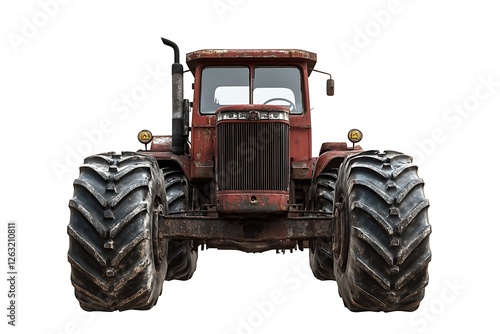 © md, Obraz premium Rusted Red Tractor Front View, Ready for Use in Agriculture