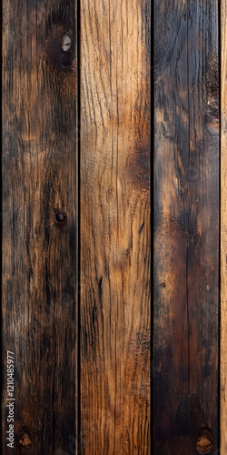 Fototapeta premium Rustic Aged Wooden Planks with Rich Brown Texture Perfect for Background Use...