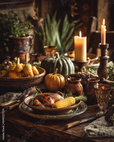 © Caywan, Fototapeta premium Rustic Autumn Dinner with Harvest Vegetables